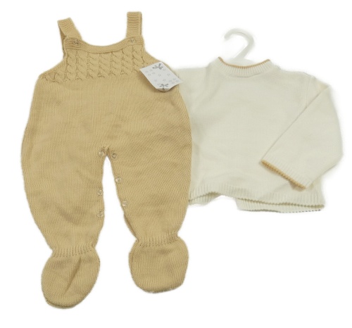 Nové - 2set - Béžové pletené dupačky + bílý svetr