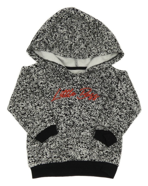 Černo-bílá vzorovaná mikina s nápisem a kapucí