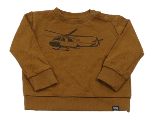 Hnědá žebrovaná mikina s vrtulníkem