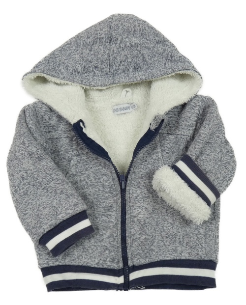 Modrá melírovaná propínací pletená zateplená mikina s kapucí