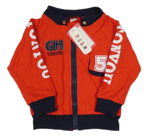 Nové- Červeno-modrá lehká propínací mikina s nápisem