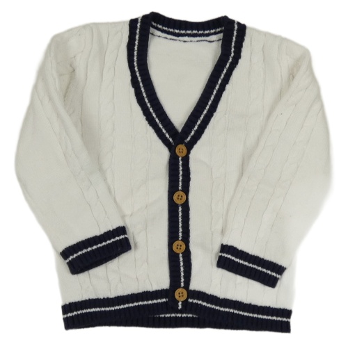 Bílo-tmavomodrý vzorovaný propínací svetr Nutmeg