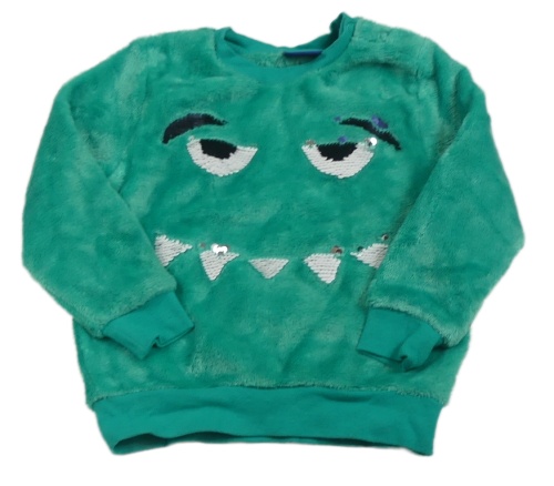 Zelená plyšová mikina s příšerkou z překlápěcích flitrů Lupilu
