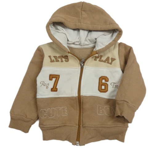 Béžovo-hnědo-bílá propínací mikina s číslem a kapucí