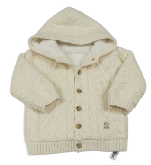 Smetanový vzorovaný pletený propínací zateplený svetr s medvídkem a kapucí Nutmeg