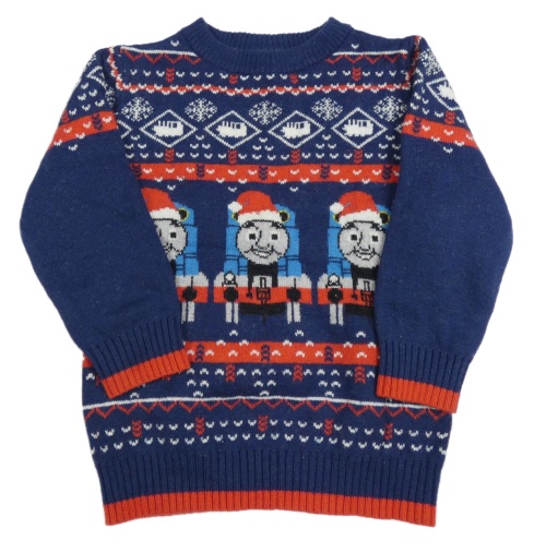 Tmavomodro-červený svetr vzorovaný vlněný svetr s Mašinou Tomášem Tu