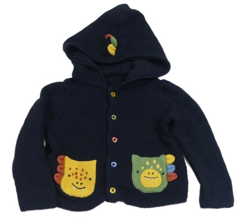 Tmavomodrý propínací svetr s kapsami s dinosaury a kapucí Tu