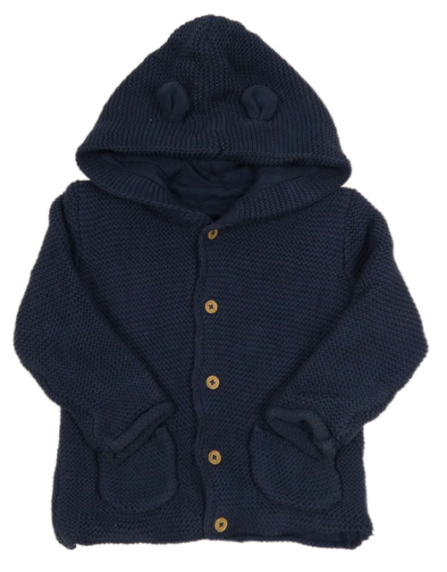 Tmavomodrý propínací podšitý svetr s kapucí s oušky George
