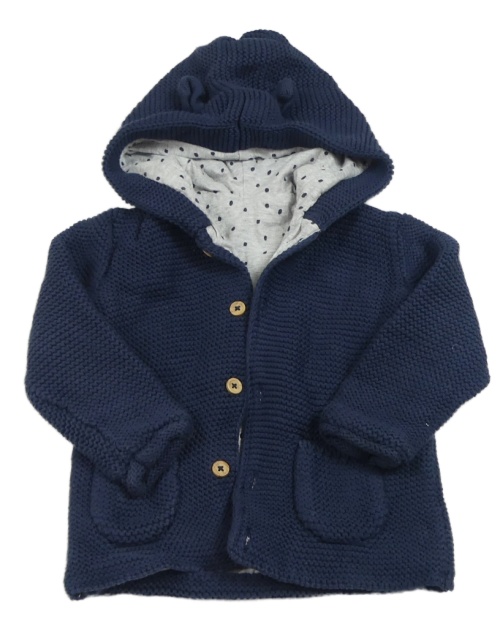 Tmavomodrý podšitý propínací svetr s kapucí George