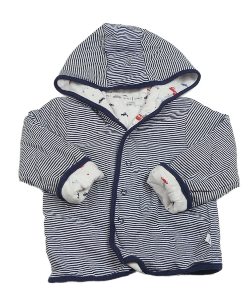Tmavomodro-bílá pruhovaná zateplená oboustranná propínací mikina s kapucí Jasper Conran