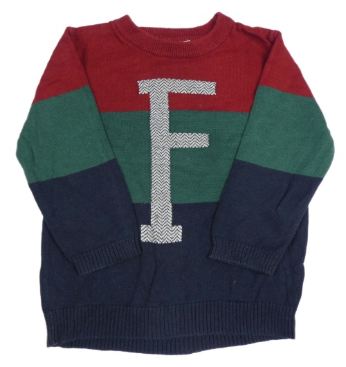 Vínovo-tmavozeleno-tmavomodrý svetr s písmenem