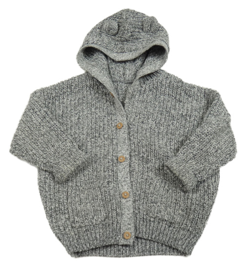 Šedý melírovaný pletený propínací svetr s kapucí George