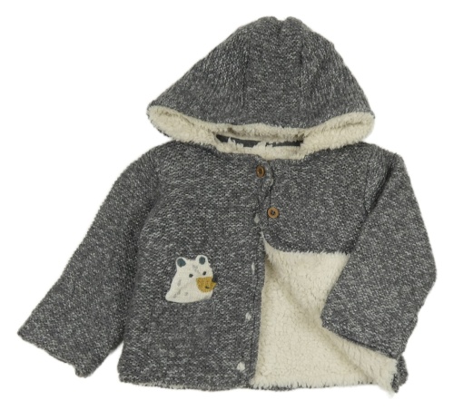 Šedý melírovaný zateplený propínací svetr s medvídkem a kapucí M&S
