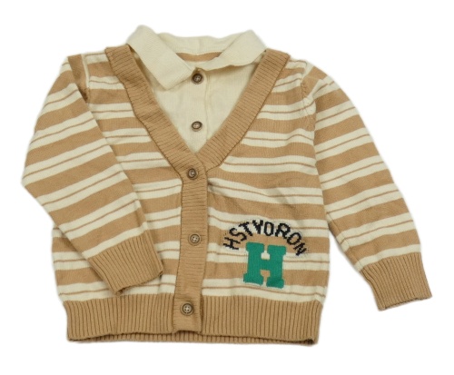 Béžoo-smetanový pruhovaný propínací svetr s vsadkou a písmenem