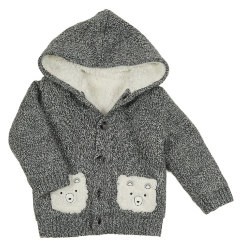 Šedo-bílý melírovaný zateplený propínací svetr s medvědy a kapucí Nutmeg