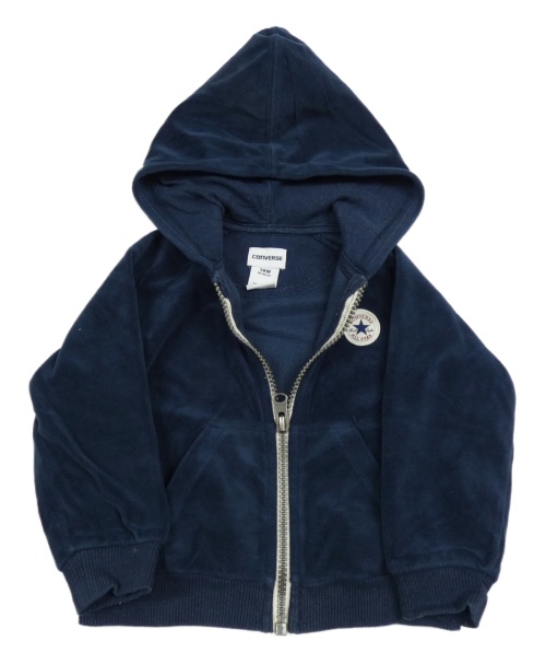 Tmavomodrá propínací sametová mikina s logem a kapucí Converse