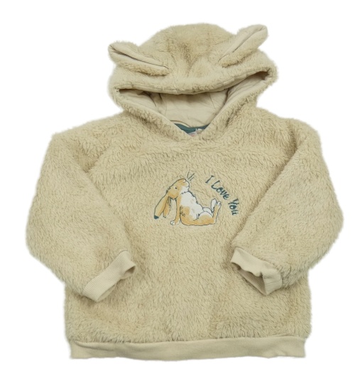 Béžová chlupatá mikina s králíčkem a kapucí Tu