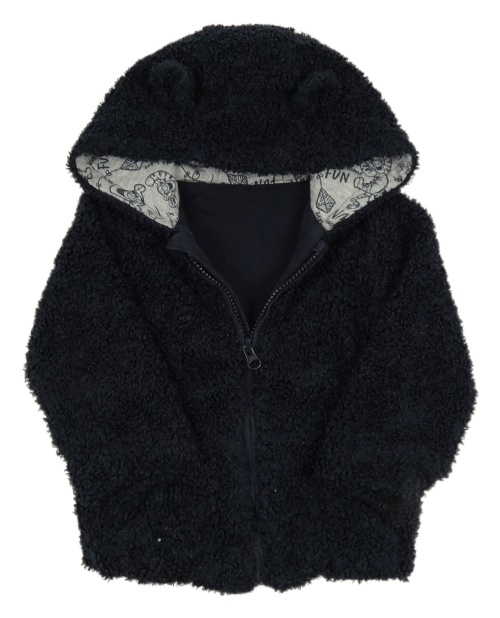 Tmavomodrá huňatá podšitá propínací mikina s kapucí George