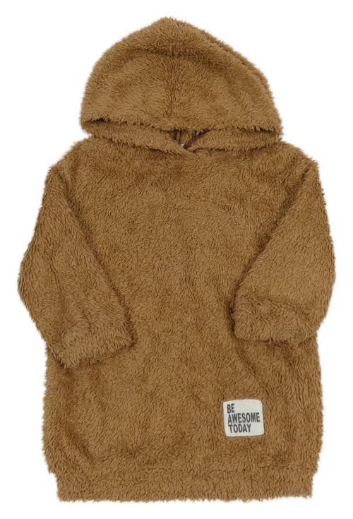 Hnědá chlupatá dlouhá mikina s kapucí Shein