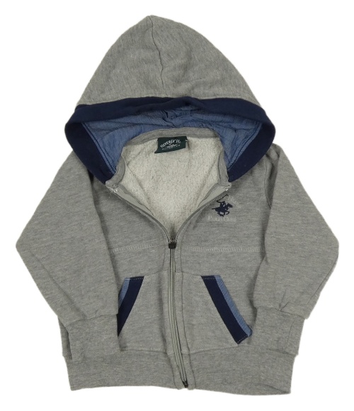 Šedá propínací mikina s výšivkou a kapucí Polo Club