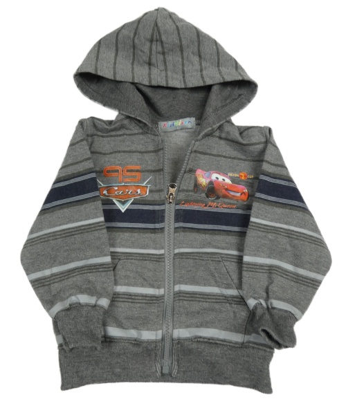 Šedá pruhovaná propínací mikina s Cars a kapucí Kidtizen
