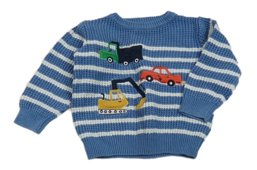Modro-bílý pruhovaný svetr s auty Nutmeg