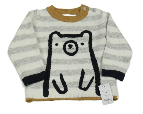 Nové - Šedo-bílý pruhovaný svetr s medvědem Nutmeg