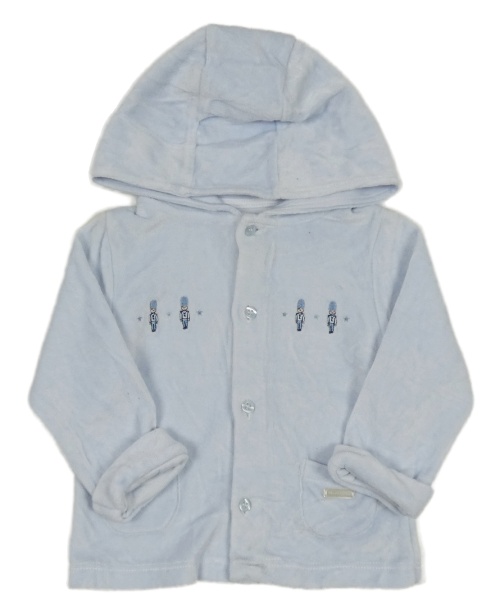 Světlemodrá sametová propínací mikina s vojáky a kapucí