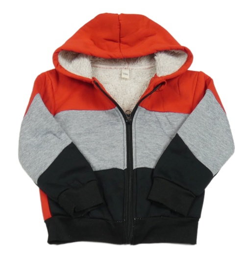 Červeno-šedo-černá zateplená propínací mikina s kapucí