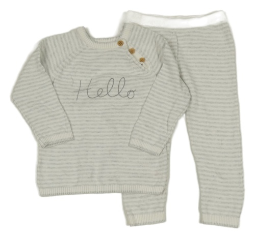 2set - Šedo-bílá pletená pruhovaná souprava s nápisem
