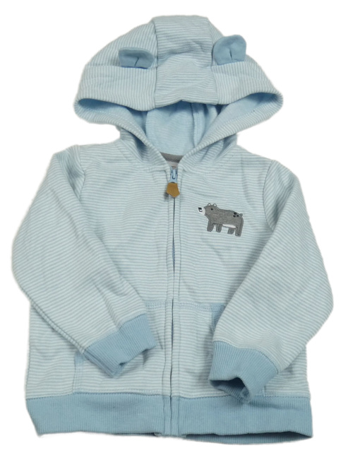 Světlemodro-bílá pruhovaná propínací mikina s medvědem a kapucí Carter's