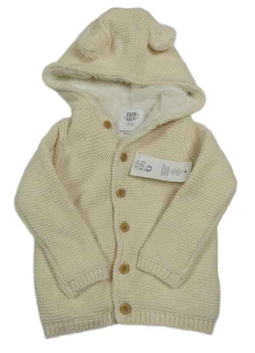 Nové - Krémový zateplený propínací svetr s kapucí s bambulemi F&F