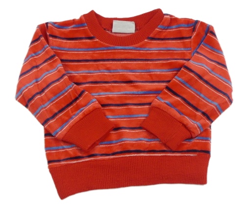 Červeno-modrá pruhovaná sametová mikina