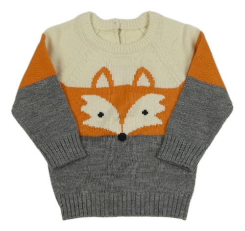 Smetanovo-oranžovo-šedý melírovaný pletený svetr s liškou