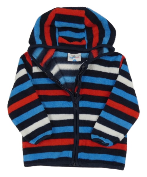 Tmavomodro-modro-bílo-červená pruhovaná fleecová propínací mikina s kapucí Topomini