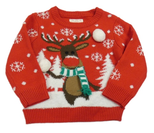 Červeno-bílý svetr se sobem a blikátkem F&F