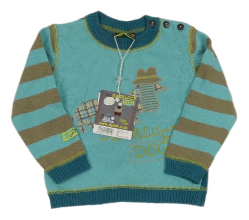 Nové - Modro-hnědý pruhovaný vlněný svetr s pejskem a nápisem