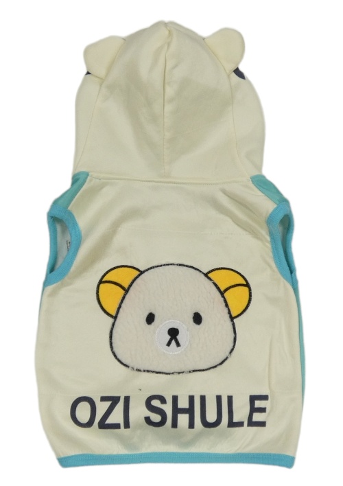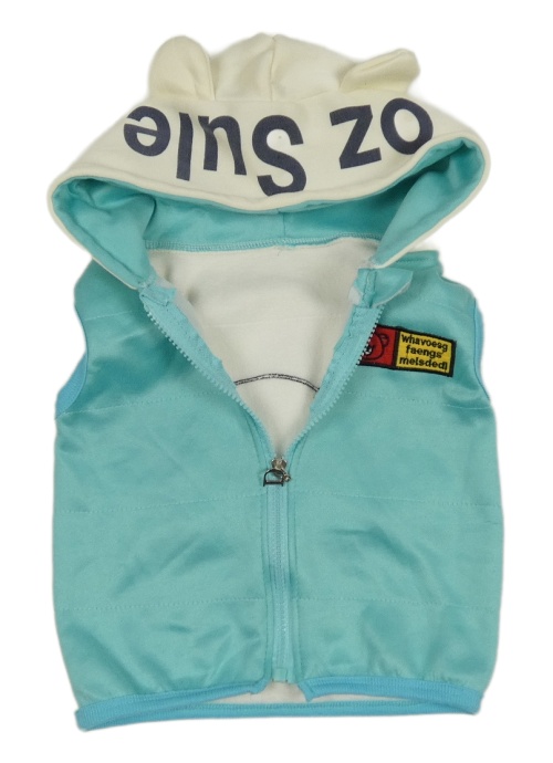 Tyrkysovo-smetanová tepláková propínací vesta s nášivkou a kapucí