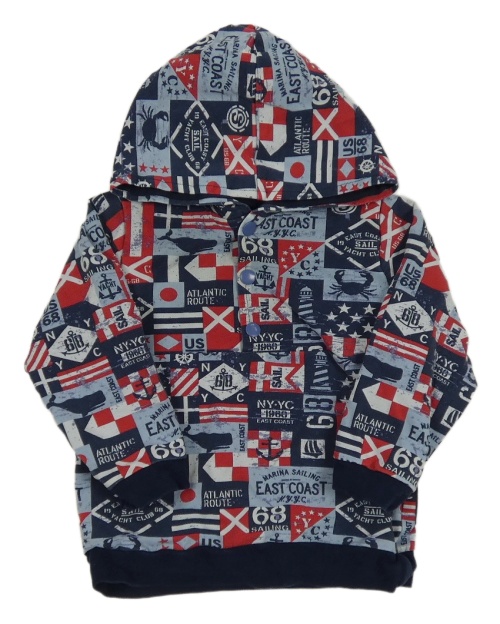 Modro-tmavomodro-červená vzorovaná propínací mikina s kapucí