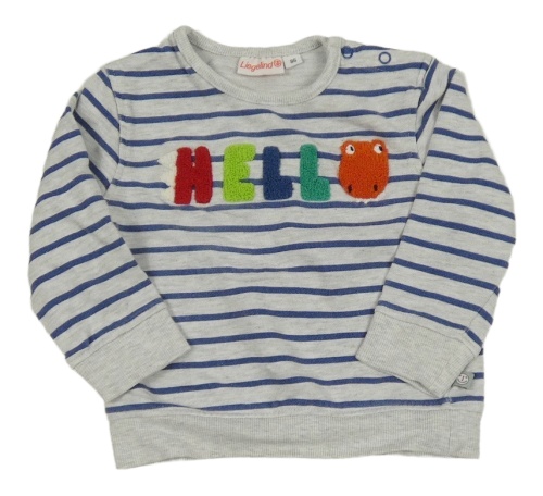 Světlešedo-tmavomodrá pruhovaná melírovaná mikina s nápisem a dinosaurem Liegelind