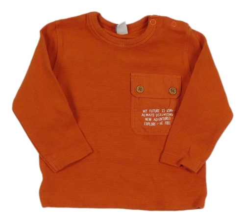 Tmavooranžová žebrovaná mikina s kapsou s nápisy Topomini