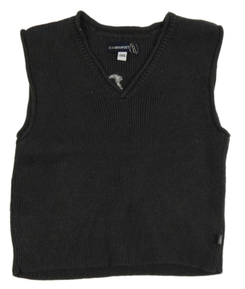 Tmavošedá žebrovaná vlněná vesta s nápisy JEAN BOURGET