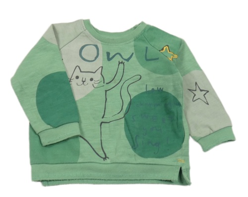 Zeleno-béžová mikina s kočičkou a nápisy M&S