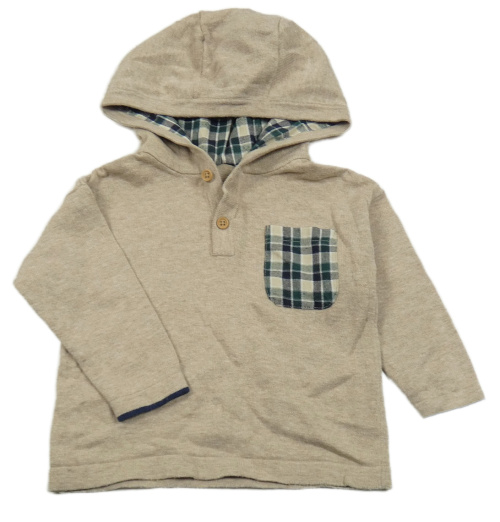 Béžový melírovaný svetr s kostkovanou kapsou a kapucí Nutmeg