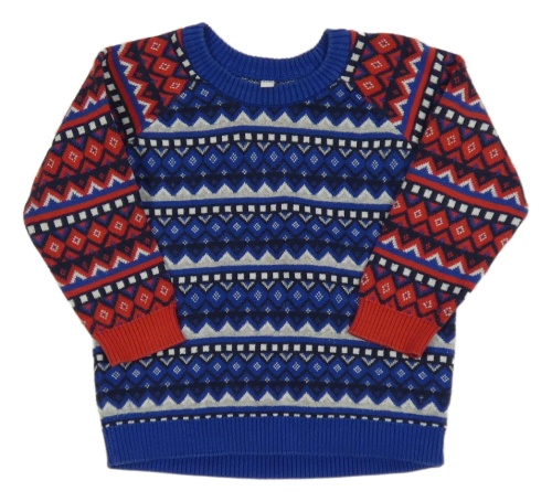 Modro-béžovo-červený vzorovaný svetr M&S