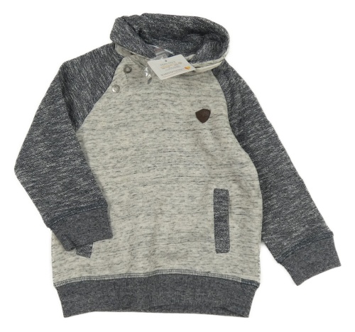 Nové - šedo-bílo-tmavomodrá melírovaná teplá mikina s nášivkou a stojáčkem Topomini