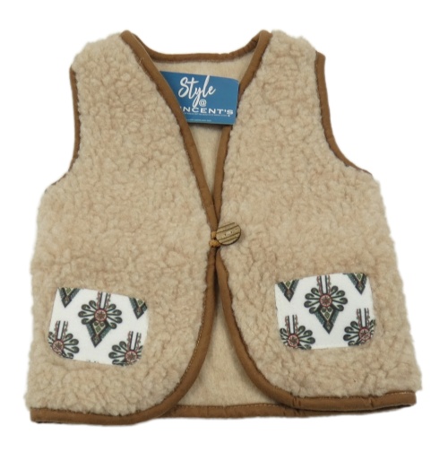 Nové - Béžová huňatá propínací vesta s kapsami