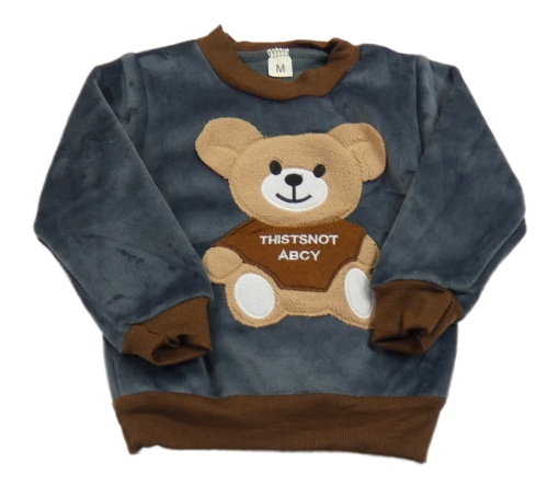 Tmavošedo-hnědá plyšová mikina s medvídkem