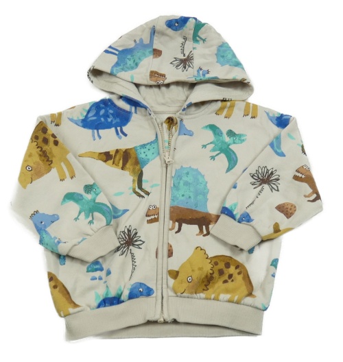 Světlebéžová propínací mikina s dinosaury a kapucí George