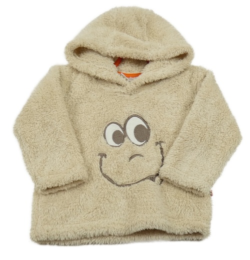 Béžová chlupatá mikina se smajlíkem a kapucí Ergee
